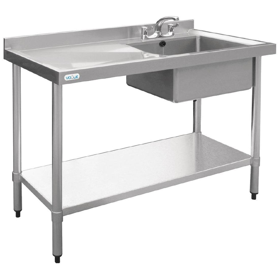 This stainless steel sink unit from vogue makes washing dishes easy, with a sloped draining board that helps water to quickly drain away, preventing your sink from rusting. The stainless steel construction ensures the sink can stand up to constant use in commercial kitchens, giving you a reliable dish washing station. As well as being reliable and resilient, the sink also helps you to maximise storage space thanks to it's built-in undershelf, perfect for anything from pots and pans to cooking ingredients.