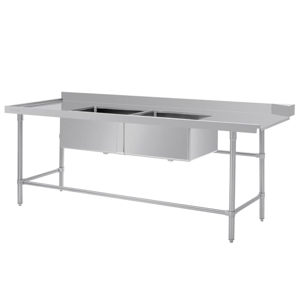Vogue Dishwasher Inlet Table with Double Bowl Sink 90mm outlet 2400x700x960mmL/H